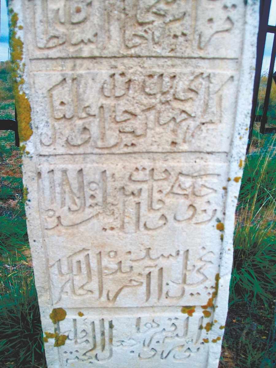 Құлпытастағы жазу: «Һәзәл қабр, әл мархум, әл мадфун» – мағынасы: Қабыр иесі қамқорлық, мейірімділік көрсетер жердегі, жерленген». «Кічі юз қазақ юртының ханы Әбулхаир ұғлы Нұралі хан ұғлы Орхан сұлтан ұғлы Чинғали сұлтанның қызы Ермекжан ханым, сұлтан Сейткерей Жиhангирхан ұғлының заужаты офат 31 яшнде 1850-інчі ил, әсет» деген жазулар бар.